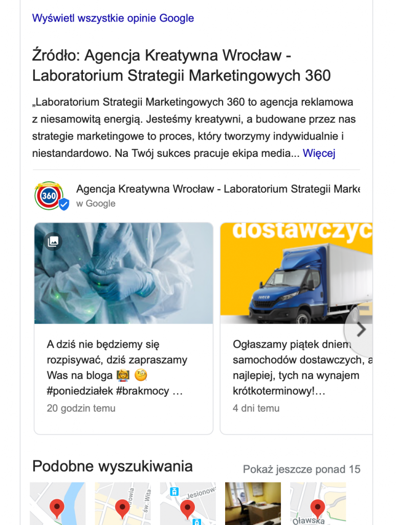 Wizytówką możemy zarządzać poprzez panel Google Moja Firma – to turbo ważne! Dzięki niemu możemy publikować różnego rodzaju informacje, na przykład w postaci wpisów, czy oferty powitalnej, czyli spełniać jeden z czynników rankingowych – trafność. 👩‍🏫 🧐