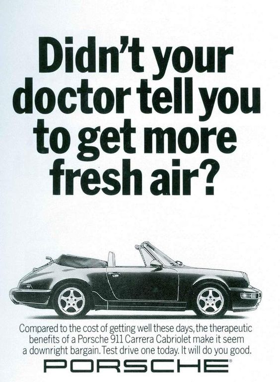 W dobie wszechobecnego bombardowania informacjami, naszym kluczowym zadaniem jest przyciągnięcie uwagi odbiorcy i zatrzymanie jej na dłużej. Jedną z coraz bardziej popularnych metod osiągania tego celu jest wykorzystanie luźnego przekazu w reklamie, co dobrze demonstruje przykład baneru Porsche (poniżej + inne), zachęcającego do skorzystania z dobroczynnego wpływu jazdy kabrioletem dla zdrowia.