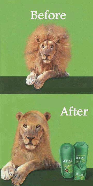 Reklama Sedal używa przekształcenia wizualnego — z lwa o bujnej czuprynie na lwa z gładko ułożoną grzywą — aby symbolicznie przedstawić efekty używania ich produktów do włosów. To zabawny sposób na pokazanie skuteczności szamponu i odżywki, który zapada w pamięć i wyróżnia produkt na tle konkurencji.