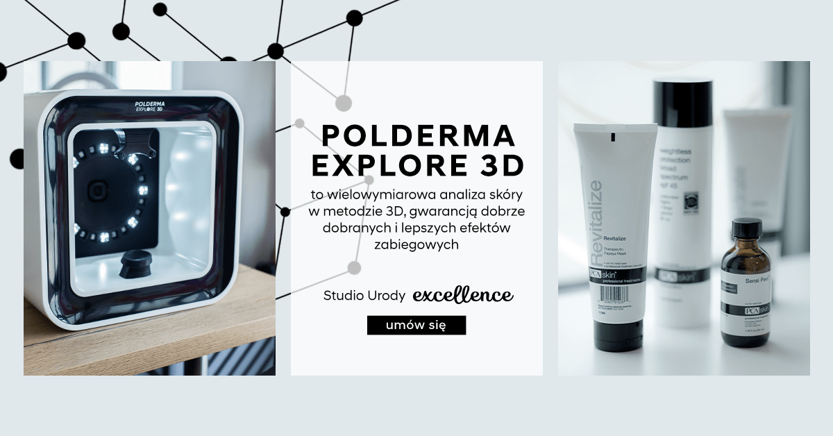 Polderma Explore 3D to zaawansowana technologia i najnowsze oprogramowanie w urządzeniu służącym do kompleksowej analizy skóry twarzy. Już teraz, dostępna w Studio Urody Excellence, z którym mamy przyjemność współpracować podczas kolejnej kampanii online.